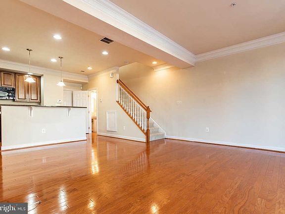 Immaculately maintained Brick End-Unit Townhome in sought-after Villages of Urbana in mint condition. Boasts beautiful bright bay bow windows in both Living Room & Master Suite. Shining hardwoods span throughout the main level living space with open concept gourmet Chef's Delight Kitchen featuring granite countertops, center focal-point island with elevated bar underneath stylish pennant lighting, luxury natural gas cooking, double sink, matching sleek black appliance package, recessed lighting, crown molding throughout. Step up to the bonus second story loft with potential to convert to 3rd bedroom, with a walkout french door balcony deck to enjoy some fresh air while you sip your coffee or drink of choice. Generous master suite features double walk-in-closets, luxury attached bath with dual vanity, walk in surround tile shower. Enjoy convenience of a rear entry 1 car garage with a 1 car driveway space, plus plenty of street parking for visitors. Low maintenance, great community, award winning schools! Welcome Home!