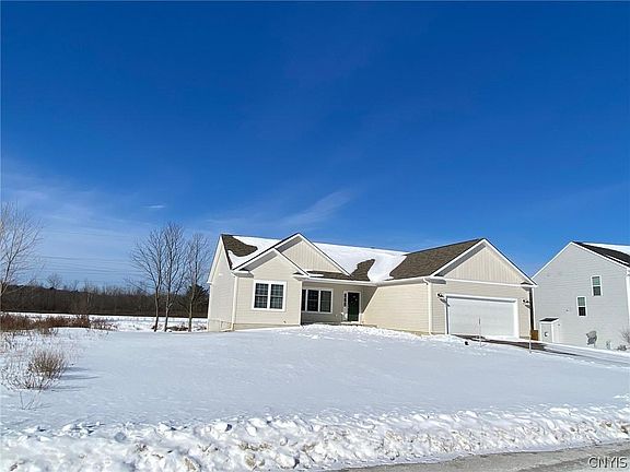 *****BEAUTIFUL 1 YEAR OLD CUSTOM RANCH HOME OWNER JOB TRANSFER WITH FLEXIBLE CLOSING***** This new 3 bedroom 2 full bath Ranch home boasts 1688 Sq. ft., open concept floor plan with gleaming sand in place hardwoods, central AC, 9' ceilings throughout, a gourmet kitchen with a huge island, custom cabinets with soft close doors and drawers, granite countertops, brushed nickel handles and a walk in pantry. The large master suite has an impressive bath with double bowl vanity sink, granite cabinet top, plank tile flooring, tiled shower with special order full height glass doors! The laundry room has a new washer & dryer, custom cabinet with wash sink and matching granite top. There are 2 more bedrooms and a full bath on the other side of this home. There is also a large covered front porch that provides evening shade, 2 car garage with garage door opener, full basement with high ceiling, a large garden window for natural light and 1688 sq. ft. that could easily be finished off or used for storage. This home is located near all major highways, shopping Oneida River and Oneida Lake!