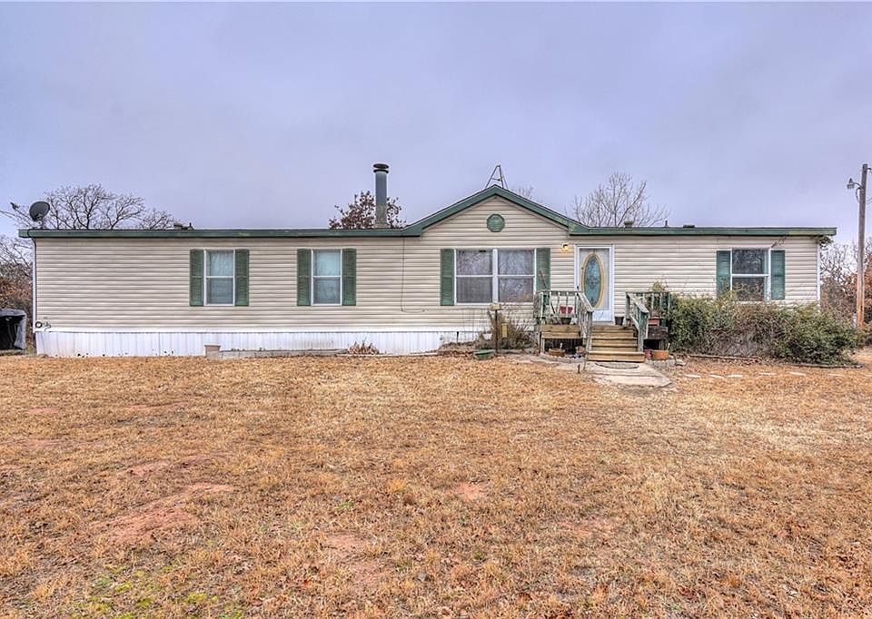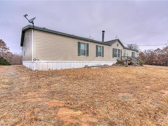 Wonderful location and peaceful place! Five acres nestled only minutes from Edmond, Midwest City, or the Turnpike. The 3 bed and 2 bath manufactured home offers a large kitchen with pantry, open concept-with two living areas. Spacious bedrooms on one end and master bedroom on the other end. Master includes double vanities with separated tub and shower. Enjoy the trees or clear it out to your liking. The opportunities are endless with this property. Schedule your private showing today!