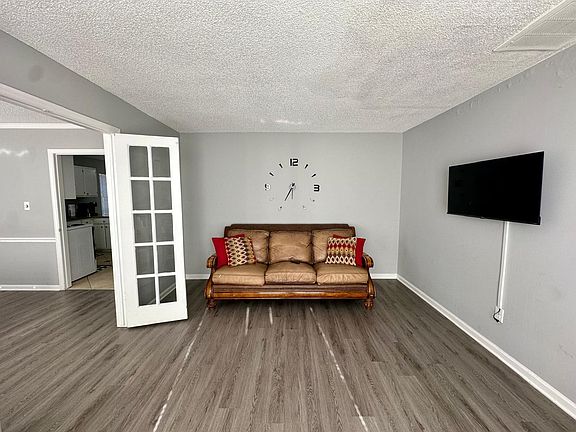 Inside, the home features a spacious recreation room complete with a built-in bar, foosball table, and dartboard, providing an excellent space for entertaining or relaxing. The fully equipped kitchen and in-home washer and dryer add to the convenience of this residence. Every furnishing shown in the pictures is included in the rent, ensuring you have everything you need from day one.