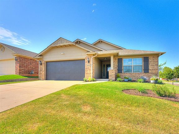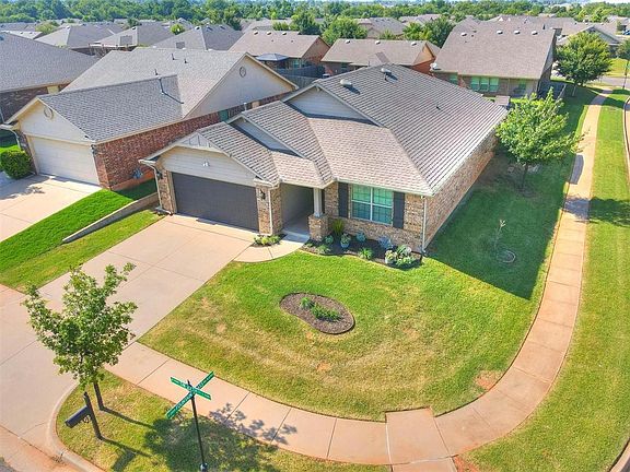 Fantastic home in Mustang School district! Welcome to Fountaingrass! A Beautiful corner lot with a built- in playground in back yard! Backyard oasis with the extended back patio! This home features 4 bedrooms, 2 baths and a huge living room with lots of windows making it such a bright space!! The appealing kitchen has granite counters a large pantry and the refrigerator stays!! Adorable barn door entry to the custom office nook with stunning woodwork. A huge primary bedroom that is on the opposite side of the guest suites! Also boasting of an in-ground storm shelter in the garage! A must have in Oklahoma! The location is awesome for easy access to highways, shopping, restaurants and Schools! Don’t miss out on this one!!
