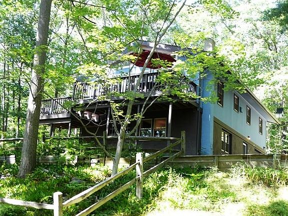 Peace, tranquility, and privacy abound on this wooded 2.4 acres. You will fall in love with open floor plan of this well maintained raised ranch that offers a cathedral ceiling and loads of natural light for bright comfortable daily living. Your day will likely begin and end on the deck off main living area looking out at woods and nature. Glass wall at end of open dining area allows for this view year-round. List of many improvements available. Two propane furnaces, one down, one up with electric heat for backup. Unbelievable ambiance. All this wooded privacy within minutes of Rte 86.