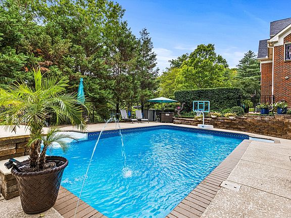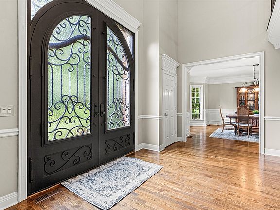 This beautiful home on an acre lot with beautiful mature trees, a pool and cabana, and a finished basement! Custom double iron doors from Iron Lion which welcomes you into a beautiful grand foyer. Main floor large spacious primary bedroom with ensuite bathroom which includes double vanity, separate tub and shower. The living room showcases a wall of windows overlooking the serene backyard. Downstairs, is a finished basement with a "Nashville Music" vibe! The basement also includes a full bath and a drop zone room for pool essentials. This home is perfect for daily living and for entertaining!