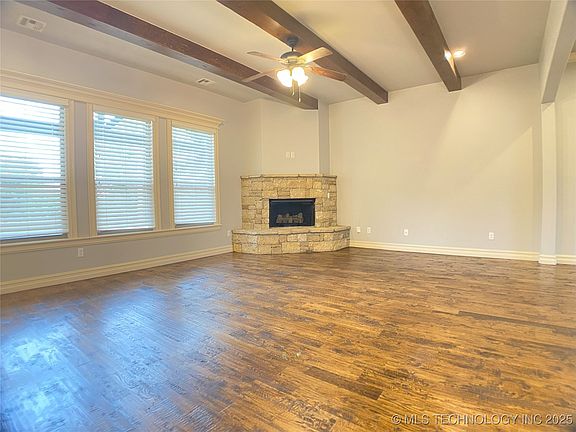 This modern Executive Homes single-story residence features 4 bedrooms and 3 full bathrooms, including a convenient Jack and Jill bath. The home offers a formal dining room, a spacious living area, and an open-concept kitchen with an additional dining nook. There’s a covered back porch and an open patio—ideal for relaxing or entertaining. For added safety, the property includes an indoor storm shelter located within the three-car garage.