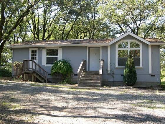 2 bedroom, 2 bathroom modular home as 2nd unit on 21 acre parcel. Close to town and well off the road. Private, quiet setting with back patio and huge yard area looking to water features. Oak trees abound on this property. A fantastic setting and location! No garage. Pets negotiable. $1650/month rent, plus security deposit. Available NOW! Do not drive down private lane without appointment. Call Donn at 707-953-5975