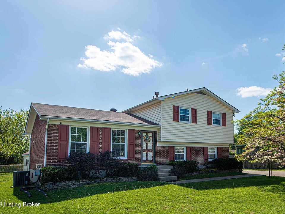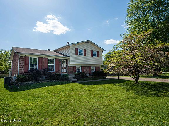 Located near Charlie Vettiner Park between J-town and Fern Creek, this meticulously maintained home has it all with 4 bedrooms, 2 full baths, a finished basement, and 2.5 car garage! Updates include newer HVAC system, water heater, and fireplace firebox. As you enter the home, you'll find a large room that could make a great living room, formal dining room, or a great office to work from home! A well equipped kitchen and dining room complete the main level. The lower level provides a cozy family room with beamed ceiling, a fireplace, and new carpet! The lower level also has a bedroom and full bath with walk-in shower. The upper level has three spacious bedrooms with new carpet, plus a full bath with new vanity and tub surround! The finished basement offers additional space for an office, exercise, or hobbies, plus storage and laundry. Washer and dryer are fairly new and will remain for the buyer! From the family room you exit to a large covered patio in the backyard. Fully fenced in, the lush yard also features a small playhouse perfect for kids play or for storage, plus an additional large shed behind the detached 2.5 car garage. There is an abundance of storage at this well-maintained home! Schedule your showing today!