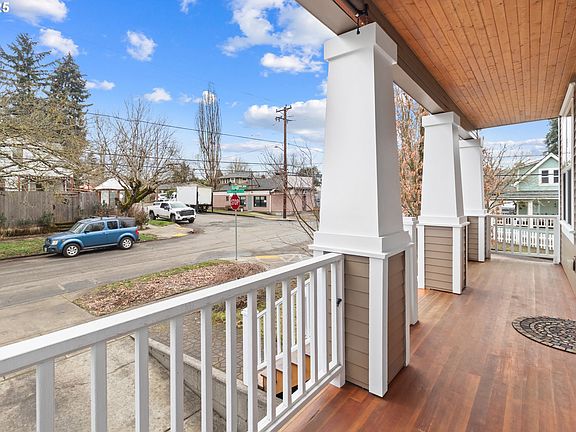 Cathedral Park Modern Foursquare Home with Willamette River View. Charming covered front porch. Gorgeous architectural features, boxed ceilings, pillars, and 5 panel doors. Entry with open staircase. Living room with hardwood floors, boxed ceilings, and fireplace. Light and bright, open modern kitchen with granite tops, an expansive island, tons of counterspace, and a glass pane door that leads out to an ample deck with a river view and backyard access. Owners suite upstairs with your own private balcony to enjoy the river as well as double sinks, a walk-in closet and a private soak tub. Separate laundry room upstairs with storage. Partially finished downstairs, a perfect bonus area with potential to finish for whatever fits your needs best. Private fenced yard with uncovered and covered patio space to enjoy the outdoors. Central air. Close to the beautiful Cathedral Park and boat ramp plus St. John's highly rated shops and restaurants. Well maintained, only 1 owner! Click the virtual tour link for a 3D home tour and floorplan! [Home Energy Score = 9. HES Report at https://rpt.greenbuildingregistry.com/hes/OR10070053]