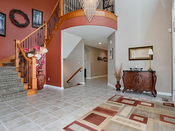 Spectacular Richmond home on rare .55 acre lot! Grand foyer showcases a red oak knotty alder staircase with iron spindles! Spacious vaulted living room and dining room with hardwood floors for formal entertaining! Stunning kitchen with plentiful knotty alder walnut finish cabinets featuring soft close doors and drawers, Brazilian Typhoon Bordeaux leathered granite countertops, custom tile backsplash, stainless steel GE Profile appliances, center island, breakfast bar and planning desk, and a sunny nook overlooking the backyard for family meals and BBQs! Cozy family room with gas log fireplace, shelves, and entertainment built-ins! Wash day is a breeze in this laundry room! Shaker Cherry cabinets with 5 locker-style sections boast hanging areas and shelves, plus pull-out under-cabinet baskets at each locker! There are also 4 large pull out baskets with canvas liners for laundry sorting! Upstairs you’ll discover a stunning master bedroom with en suite sitting area/nursery, a private 5-piece bath, and walk-in closet featuring Shaker Cherry cabinetry w/ adjustable shelving, center island with drawers, and 3 pull-out clothes hampers! The sauna in the en suite is included! Bedroom 2 has a private full bath (great for guests or teens), and Bedrooms 3 and 4 share a full Jack & Jill bath! The finished basement features a 5th bedroom, rec room with wet bar, theater room (theater components are included), bonus/exercise/hobby room, and a full bath! Unbelievable backyard with paver patio, grill area, fire pit and sport court! Super convenient location - just steps to the Eastridge Rec Center, Falcon Park, Highlands Ranch High School & Cresthill Middle School! Plenty of shopping and dining are less than a 5 minute drive away, and there’s easy access to C-470 and I-25! Welcome Home!