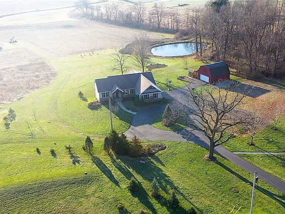 If you are a sunrise lover, you must consider 9503 Mennonite Rd with a total of 2979 sq ft of living space. You'll feel how special this property is as soon as you make your way down the long tree lined drive way. The 5.6 acre property used to have a farm house believed to be built in 1850. The owners and their builder carefully chose timeless items from the original home and incorporated them in this home when built in 2009. Original poplar wood floors, porch wood ceiling, slate, sandstone & beams are a few of the items. The Great room with fireplace is open to the kitchen. Cambria countertops, stone backsplash, Custom made maple cabinets, & new appliances make cooking a breeze in the fabulous kitchen. The primary suite offers a private bathroom w/ tile shower and has access to a screened porch that overlooks the property with million dollar views. Bedrooms 2 & 3 are expansive and share a full bath. The Laundry Room offers built in storage areas and a window seat. The walk out lower level reveals a living room room w/ stone fireplace, a full bath and bedrooms 4 & 5 w/egress windows. The property offers a spring fed pond, a fire pit area, a chicken coop (chickens can stay) a barn with electric, water, loft and so much more. Park your RV in the 5th wheel area with septic hook up, electric, purified water from the house. Quality and beauty is found at every turn in this home. Updates include: Appliances 2021, HVAC 2021, Pond drudged 2021. Make this gorgeous home yours???????????????????????????????? today!