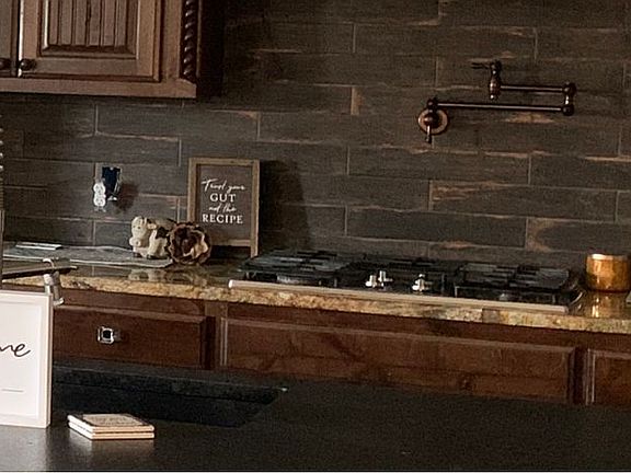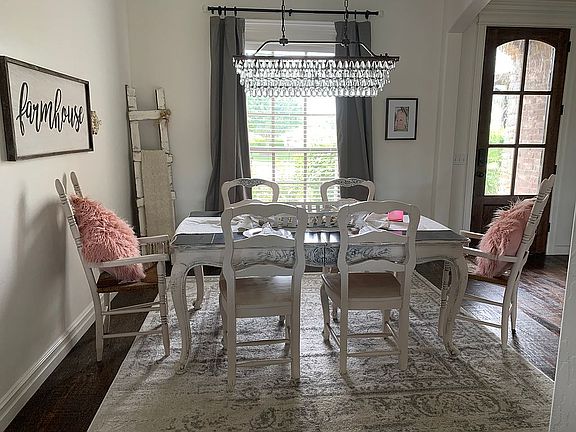 Amazing and Elegant Executive home. This home is the loved piper plan featuring 4 bedrooms, 2.5 baths, office, dining room, breakfast room, mudroom and three car garage. Walking in the open concept dining-living-kitchen home you will note a complete update with new paint, granite, lighting, ceiling fans, cabinet hardware, shower heads, tons of exquisite crown molding, and modern faucets. The entry space, dining, office and master hall are covered in hardwood flooring. The remaining floors are travertine tile, an upgrade that will last a lifetime. The only carpet in the home is in the large master closet, new and plush. The updated office is painted in naval, the 2020 color of the year. It features a unique Down rod fan from the cathedral ceiling. The living area features a floor to ceiling stone fireplace. Kitchen cabinetry is an upgrade with intricate wood detailing and modern hardware. Built in wine refrigerator in huge center island. Commercial kitchen faucet with LED lighting. New and upgraded modern kitchen sink. The open living plan looks out on the outdoor entertainment space that boasts a vaulted outdoor ceiling, outdoor curtains, tiled floor and a fabulous hot tub area. Other extras include foam insulation, pot filler, Levolor blinds, new kitchen backsplash, and vaulted ceilings in the kitchen and breakfast dining. Master bath has a new modern tub and tile. Rounded curved detailing and all interior doors have been professionally painted black for a modern decor. If that is not enough, there are no neighbors in the back and you have a view of the gorgeous bailey golf course. The three car garage includes an F5 storm shelter to protect your family.
