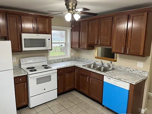 New kitchen cabinets & appliances. 2 new bathrooms with tile, bathtubs & vanities. New lighting & flooring. Nice hardwood, tile & waterpoof laminate flooring. One car detached garage with covered patio. One year lease to be renewed at end of lease. Tenant pays for LGE & Louisville Water. No cost for trash, recycling & yard waste pickup. No smoking in house. Tenant responsible for maintaining yard. Landlord provides refrigerator, stove, microwave & dishwasher.