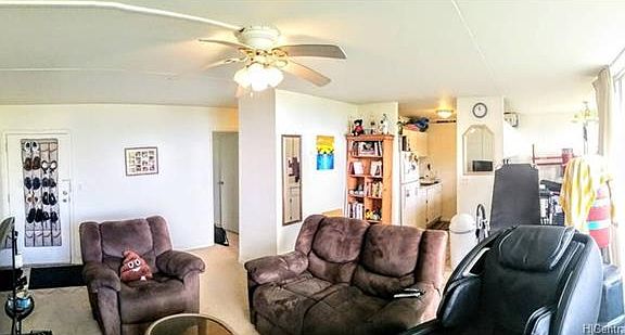 This 2 bedroom, 1 bathroom, 1 parking space condominium in Mililani that offers a rare opportunity. Most living spaces in Mililani are single family or townhomes built low to the ground. This top floor condominium is located on a hillside which towers above the other structures in the area. This allows for unimpeded views and breezes. This townhome is within the Nahoa Apartments community that is located on along a ridge in Mililani just past the golf course. The grounds are well maintained. Mature trees and manicured greenery surround the community's homes and parks. Mililani is a beautiful planned community complete with parks, shopping, transportation and organized sports. This town in the center of the island and provides a quiet community with exceptional schools, close to bases.