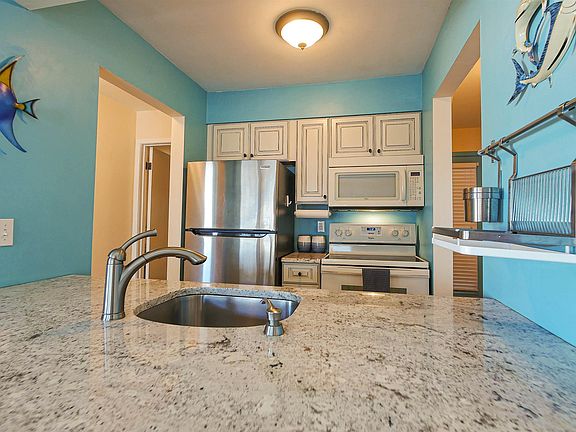 Your search is over! This affordable pet friendly one bedroom condo is in beautiful condition and offers bayviews and sensational sunsets! Newer kitchen with granite counters and 1 year old refrigerator, and the new bath has a large walk in shower. Sliders open to a private deck to relax and enjoy the bay breezes and sunsets. New HVAC units in 2023 in addition to new bedroom wiindows. Small condo complex with a total of 15 units. Building improvements include new roof & siding and all new vinyl staircases. Unit has a private storage shed & assigned parking space. Walk to all the marina area restaurants including Steve & Cookie's, Tomatoes and Sofia's and you're still only a short walk to the beach! For the boater, there is a marina right on the bay. Enjoy the bayfront promenade. This one has it all so make your appointment today!