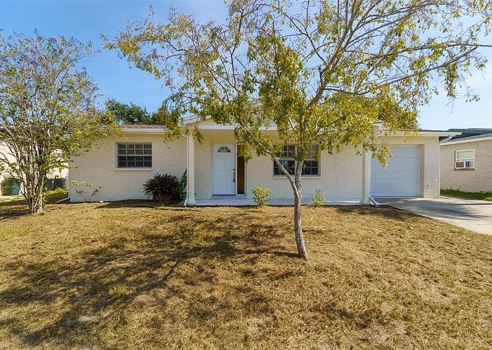 Welcome home to this charming 3-bedroom, 1-bathroom bungalow featuring a 1-car garage, oversized parking pad, and a fully fenced backyard — perfect for families, pets, and entertaining! Inside, you’ll find a bright and spacious layout with a large living area that flows seamlessly into the kitchen and dining space. The stunning kitchen is equipped with granite countertops, stainless steel appliances, hardwood cabinets, and a tile backsplash. The home features beautiful ceramic tile flooring throughout the main living areas and laminate flooring in the bedrooms for easy maintenance. Located just minutes from Little Rd, Embassy Blvd, and Highway 19, this property offers convenient access to shopping, restaurants, medical centers, and beaches — plus an easy commute to Tarpon Springs, Trinity, Clearwater, and Downtown Tampa. Major updates include a roof and AC both only 4 years old. Best of all, this home has no HOA, no CDD, no lease restrictions, and is not in a flood zone!