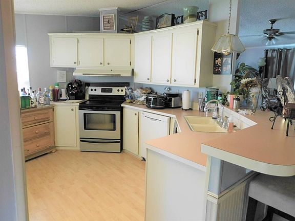 Price reduced on this 1989 Fleetwood 2 bed/2 bath fixer-upper home w/approximately 1,100 square feet. Beautiful landscaping around the home which sits on a quiet cul-de-sac. The home has a large carport and a shed with plenty of storage. The shed also has a workshop area. Laminate floors throughout the home, and a large living room area. The front lanai has vinyl windows and new screens. The home has double vanities in the master bath, new toilets and a new hot water heater. The washer and dryer are in the guest bathroom. The A/C unit has an annual maintenance agreement. The home needs a roof and some TLC and a full price offer includes a golf cart (needs batteries).The home is being sold unfurnished and is listed at $21,900 and the lot lease is $848.00 per month. This home is in a resort-style, 55+ community on the North side of Lakeland FL. Amenities include two pools, two hot tubs, Fitness center, Full-time staff fitness instructor, Tennis courts, Bocce ball courts, Pickle Ball, Horseshoes, Clubhouse, 24 Hour Manned guarded gate, lawn mowing, trash pickup and property taxes. This home is situated on a leased lot.