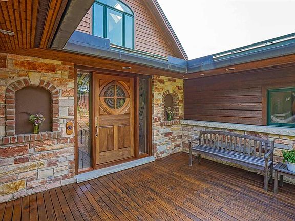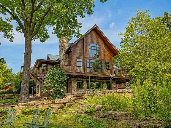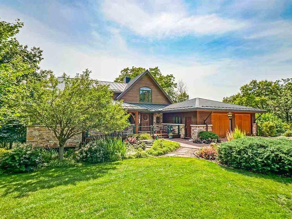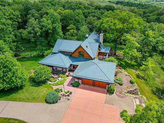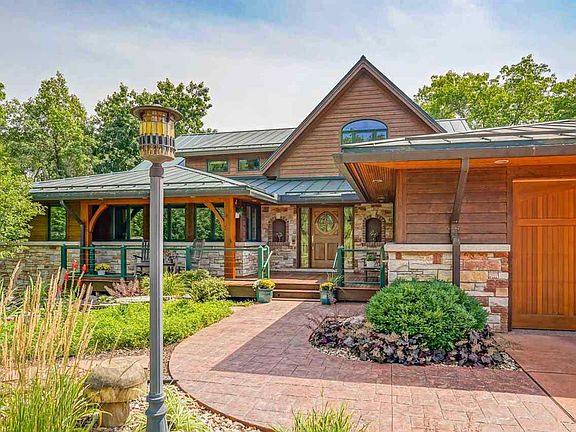Peaceful tranquility awaits.This luxury custom-designed timber frame has it all. A dream kitchen w/work space galore, island,bkfast bar, granite,SS appl's & cherry cabs.Spacious dining has buffet w/2 coffee garages, cabinets, sink, access to deck & outdoor grilling area.Great room offers soapstone fireplace, 25' ceiling & abundant windows w/nature views.Main level primary master suite w/ WIC, dual vanity, separate tub/shower. Expansive open entry,laundry,1/2 bath & den. Work from home in the front bonus rm. Exposed walk-out LL features: entertainment room w/ fireplace,2x bonus rm's, storage & full bath.A huge unfinished area perfect for MIL suite, exercise or hobby room. Radiant in-floor heat, security system,2 car heated attached + 30x40 finished,heated Morton bldg. and wrap-around deck