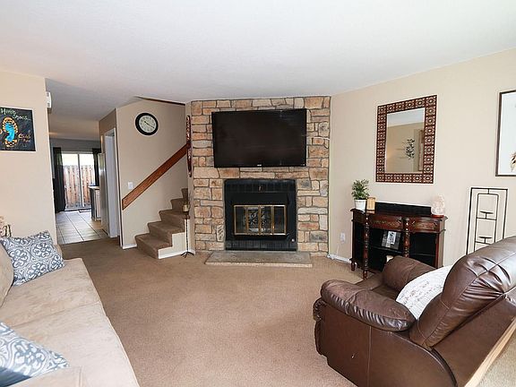 Home at last! This sunny town home has 2 bedrooms plus 4 baths. The basement garden level has an additional family room or can be used as a third bedroom & bath plus laundry. Over 1600 finished sq ft. Enter into a spacious living area with wood burning fireplace. Main floor has updated half bath. The large kitchen boasts white cabinets, counter top eating space plus a large dining area. Spread out onto the back fenced patio where there is room for your grill & small table. The patio opens up to a beautiful grassy area. The upper level has two masters each with private baths, plus ceiling fans and vaulted ceiling & ample closet space. This is a well maintained complex, the HOA is currently updating the area with many new front patios. There is one reserved parking space plus lots of open parking allowing for additional homeowner parking spaces plus street parking. There is a low HOA of $198 per month. Stay cool in the summer with newer A/C Unit.