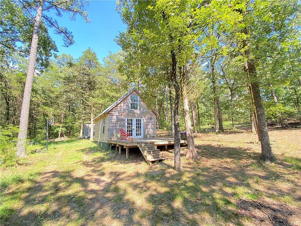 CABIN IN THE WOODS. This property features an A-FRAME Cabin with 2bed/1bath with a deck and a carport. The 2bedrooms are upstairs and the bath, laundry, living, and kitchen are on the main floor. There is a creek and the property lines are marked with railroad ties. This cabin isn't far from Sugarloaf Lake or the Ouachita National Forest so enjoy fishing, hiking, riding year around.