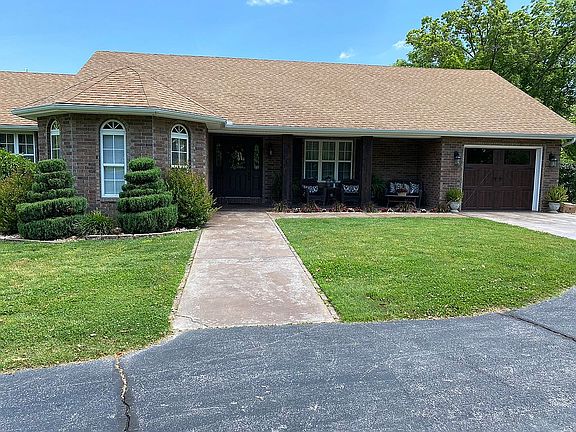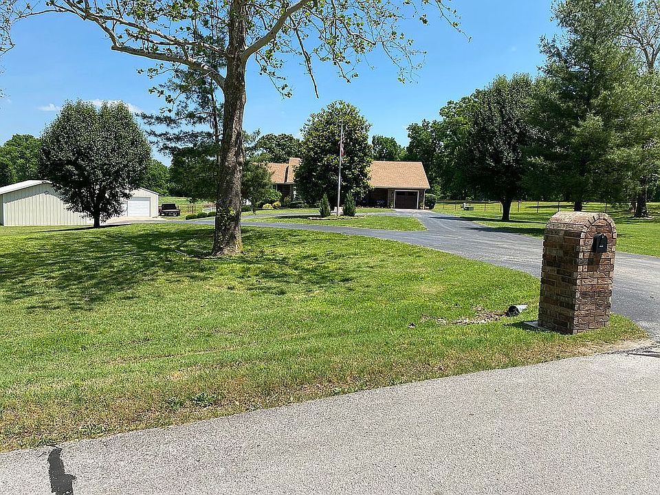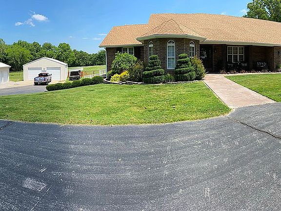 Small Hobby farm with Ranch style home built in 1998 sitting on 14 acres. This is located on a quiet cul-de-sac with amazing neighbors. Has beautiful pond and stream running through. 11 Acres fenced off for cattle. Home sits on 3 acres with 3 bedrooms, 3 baths, 2 living rooms, formal dining room, large kitchen, separate laundry room, finished basement with full kitchen and full bath, lots of storage, 2 attached garages, and 2 large detached shops. 1 Shop has heating and air. Back patio contains outdoor kitchen, fire pit, and large inground pool with diving board. Hot tub does not come with home. New roof was installed last year! Spectacular brick ranch style home built in 1998 sitting on 14 acres perfect for your dream hobby farm. This home is located on a quiet cul-de-sac with a beautiful pond and a stream running through. 11 of the 14 acres has been fenced off for cattle with the house sitting on the remaining 3 acres. This house is perfect for entertaining! 3 bedrooms, 3 bathrooms, 2 living rooms, a formal dining room, a large kitchen upstairs and a smaller kitchen/bar combo downstairs in the finished basement. With 2 attached garages and 2 large attached shops (one with heating and air) you have plenty of room for storage or parking. To top it off the back patio has an outdoor kitchen, a fire pit, and a large inground pool with diving board. This is truly a home where a 'staycation' could be more relaxing than a vacation! Call 417-592-9253 to see this home today!