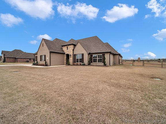 Executive Homes SIGNATURE STYLE 4/2.5/3 Located super close to Owasso. Just minutes to 86th St N & 169 so an easy commute for just about anyone! Better yet- The option of attending Owasso or Sperry school districts! Meticulously cared for and loaded with premium finishes including hand scraped wood floors, granite countertops, custom-built cabinets, beautiful stone fireplace, large windows in living area let in natural light with a view of the spacious A-frame patio-Perfect for entertaining! Water softener added recently. Energy efficient home with spray-foam insulation, 16 SEER AC, 95% efficient furnace. Fully fenced with round rail chain link with wood posts. 4th bedroom can be office as well, as it is located off dining room. All patio furniture, outdoor tv and fire pit stay with home.