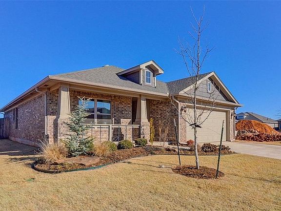 Former builder's model Fountain Grass. Conveniently located in the Mustang School District this home is located with upgrades including wood flooring, quartz counters, stainless appliances, bronze fixtures and more. The home site is beautifully landscaped and the garage is extra deep. Built with energy efficiency exceeding Energystar. Owner/Associate