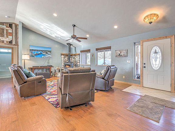 This stunning single level home features an open living concept with wood burning stove and central air conditioning! The kitchen features hickory cabinets, tile flooring, bar seating and granite countertops. The beautiful open floor plan also features vaulted ceilings, river rock hearth and inlaid barnwood accents. The primary suite offers two walk-in closets, double vanity, tiled shower and plenty of storage. On the 1.7 acres you will enjoy multiple outbuildings, play structure, fenced dog run and chicken coop. Also included is a small log cabin that has power and A/C. Lot has RV parking and power. CRR has so many amazing amenities to be enjoyed; pool, tennis/pickleball courts, golf, RV park, baseball field, basketball court, horse arena and more. This home is truly a must see!