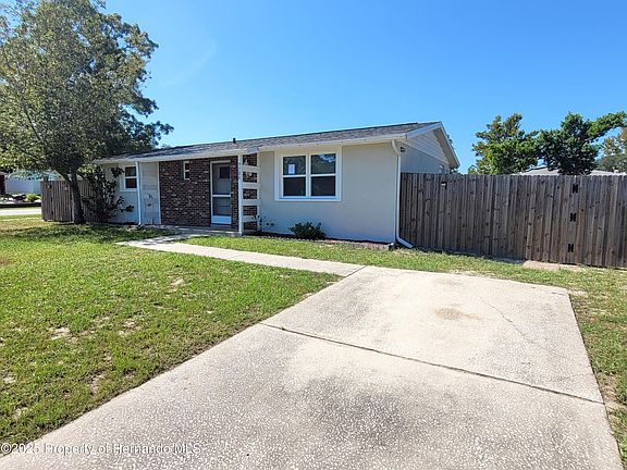 Ready for a new owner! Affordable and move-in ready Spring Hill home located on an oversized corner lot in a quiet neighborhood! This home comes with a new roof that was just recently installed (2025)! Also recently installed, the home has beautiful 12x24 tile plank flooring throughout for easy maintenance! Enter through the front door into a spacious living room. The dining area is located adjacent to the kitchen and there is a equally spacious family room that could serve many purposes. The newer kitchen has a new refrigerator (2025) and a practical pass-through over the sink to the family room making it easy to communicate with everyone. Next to the kitchen you will find a laundry room with access to the large backyard that is fully enclosed with a privacy fence complete with two gates for easy access. A sizable garden shed provides extra storage. Other features: newer Maytag Heatpump system plus additional mini split unit in the family room, newer water heater (2019), privacy fence (2022), vinyl windows. This home is centrally located with easy access to shopping, dining, medical services and hospitals, and major roadways including Suncoast Parkway just minutes away for easy commute to Tampa and international airport. Nearby, enjoy the many local attractions including Weeki Wachee State Park with its world famous Mermaids, Pine Island beach area, fishing piers, numerous boat ramps and kayak launch areas or take a short drive to Homosassa Springs State Park or visit Brooksville for many other activities and festivals throughout the year.