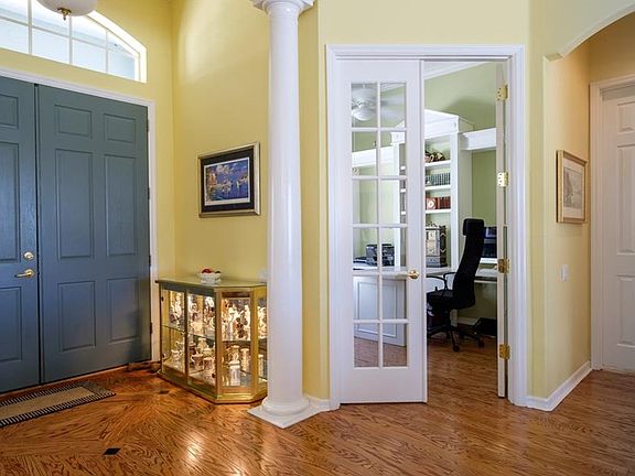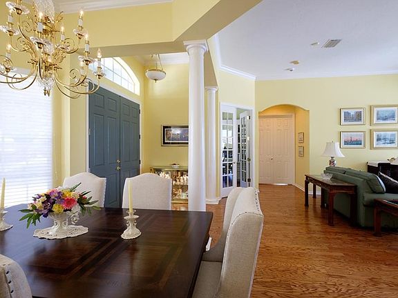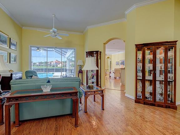 This home sparkles and shines from the fabulous curb appeal to the beautiful lake and pool views the minute you open the front door!! Featuring 4 bedrooms plus an office with terrific built-ins, a bonus room suitable for a hobby/media or game room and separate living and family rooms. In over 3200 sq. ft. of air conditioned space!! The kitchen was tastefully re-done in 2013 and 2015 with new cabinets, granite tops, tile back-splash, appliances and two pantries! This beautiful open floor plan features crown molding, high ceilings, wood floors in most rooms, split bedroom plan, 3 full baths, inside utility room, an over-sized 2 car garage with golf cart area and its own door. Relax by the sparkling swimming pool that's not only caged....It's solar heated with beautiful lake views! Hurry, come see this home today....you will be glad you did! No CDD Fee !
