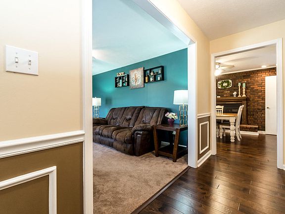**OPEN HOUSE SUNDAY 4/15 - 2-4** Welcome home to this wonderful 3 bed/2 BATH brick ranch with 2 car detached GARAGE, partially finished BASEMENT and a FENCED backyard. The inviting front porch welcomes you to your new home. There is brand NEW WOOD flooring throughout the entry, hallway and kitchen. To the left you will find a LARGE family room with new carpet installed in 2016. As you enter into the dining area of the kitchen you will find a beautiful brick FIREPLACE, all new paint and STAINLESS appliances in the kitchen. There are 3 nice size bedrooms in which two have hardwood flooring. You'll find a full bath with a linen closet and another closet in the hallway. Don't forget about the partially finished basement with full bath, family room and a room that used to be a kitchen. Seller has never used the water or gas in that room. SELLER OFFERING 2-10 HOME WARRANTY!