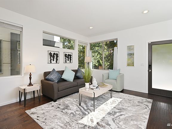 Light filled, Modern contemporary town home, Move in ready! **No HOA Dues** Conveniently located near parks, schools, transportation & entertainment. This beautiful Air Conditioned, 1,170 sqft, 2 bedroom, 1 3/4 bath townhome makes for perfect city living! Chefs kitchen features new range top, Caesarstone countertops, custom cabinetry with tons of storage! Spacious open living areas with new carpet & paint throughout. Rooftop deck perfect for BBQ’s and/or gardening! Just minutes from Greenlake, I-5, Hwy 99, Phinney Ridge and the new light rail station at Northgate. Comes complete with 1 convenient off street parking space.