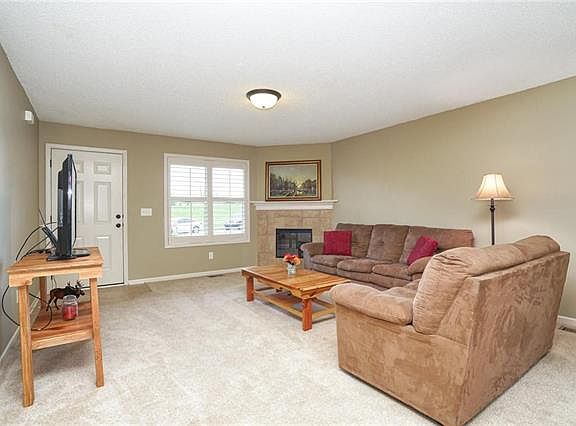 AMAZING ROOM SIZES in this end-unit town home! Living area with fireplace, eat-in kitchen with bar, pantry, granite counters, stained cabinets PLUS all appliances stay! Generous master bedroom with walk-in closet, shower and double vanity! Bedroom level laundry! Walk-out lower level stubbed for bath and egress window for potential 4th bedroom! Patio and deck with views of trees - perfect to unwind and enjoy the summer! Walking distance to retail, coffee and food! Staley Schools! Exterior maintenance provided!