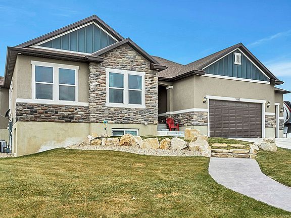 (702) 715-2071. ***Available to show day or night! Call or text anytime. Watch the full motion video in the link. https://youtu.be/15Uz9-8rivo Single family home in up and coming Eagle Mountain neighborhood! Vaulted and 9 foot ceilings throughout entire house. Quartz countertops. Huge open floor plan in basement. 3 car garage with deep garage for full size truck parking/extra storage. Huge side yard for RV parking. Lots of trees that are 3+ years old. Mostly completed landscaping. Walkout basement entry with double doors for potential private basement apartment. Gas and electric dryer hookups. Gas barbecue hookup. Grow boxes for gardening with drip sprinklers installed. Fully automatic sprinkling system in front and back yard. Daylight basement windows for natural light. Half acre zoned for agriculture/horses. 2x6 exterior walls with updated insulation for energy efficiency. Eve lights, Christmas light plugs at eves with timer installed, RV power outlet on side yard, home theater speaker rough in. Across the street from a church, it’s quiet and a fun place for kids to play and ride bikes. Park across the street with a zip line and pavilion. Garage water spigot for future sink or RV tank fill-up. High end water softener and whole house Rhino water filtration purification system. Great neighborhood with lots of kids. Within 5 miles of shopping, restaurants, bowling and movie theater. Near the new site for the Saratoga Springs LDS temple. Available to show day or night! Call or text anytime. (702) 715-2071