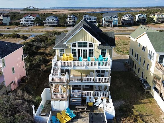 This luxurious oceanfront estate boasts 8 spacious en suite bedrooms, an elevator and a floor plan that maximizes living space. The grand great room is adorned with vaulted cathedral ceilings allowing natural sunlight to flood the space while offering breathtaking views of the ocean.The state of the art kitchen features stainless steel appliances, dual ovens, wine cooler, two dishwashers, custom cabinetry, pantry and granite countertops. Entertaining is easy with something for everyone. A theater room with plush seating is perfect for movie night, sports events or rainy days. On the lower level you'll find a large game room with billard table, arcade game, convenient kitchen and full bath.Transition outdoors where a heated pool, hot tub and private walkway to the beach await. This home has been meticulously maintained and updated with new LVP flooring, outdoor vinyl railings, corrosion sealed HVACs, outdoor shower, and expanded stone paved pool decking. See full list of updates in notes. Located just one mile from Outer Banks Fishing Pier ,the famous Fish Heads Bar & Grille and 3 Miles from Jennette's Pier. South Nags Head offers serene Outer Banks beauty minutes away from restaurants, shopping and local attractions.