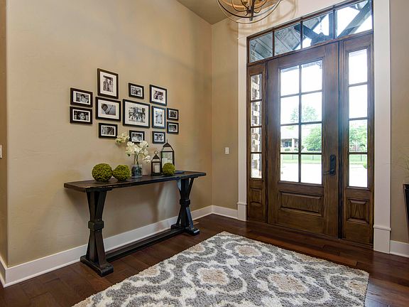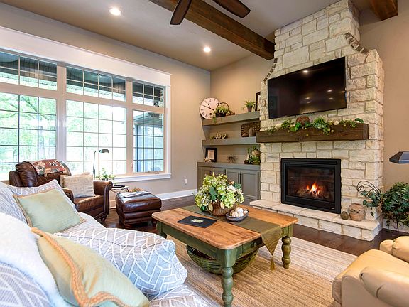 Fantastic find backing onto Fremont Hills golf course. Custom Quality Built in 2018 by Thomas McPhail with 11-foot ceilings, open floor plan, floor to ceiling windows, crown molding, barn doors, Kitchen with desk, huge pantry, charging station drawers stainless steel appliances including gas stove top, and wall oven. Spacious Granite island with space for bar stools Open to Great room with stone gas fireplace beamed ceiling Impressive entry lighting and Transom window. Laundry room and half bath with extensive cabinets and great office or hobby room. Master suite complete with gas stone fireplace, soaking tub doorless walk in shower, 2 large walk in closets one with direct access to laundry room. Two additional bedrooms and a full bath on east side of the home. Fourth bedroom Upstairs with a private bath and attic access with tons of storage space. Extras throughout, triple lock security doors, wash station in garage and F5 Storm Shelter in 3 car garage. Back patio with screened porch with floor tiles, firepit with natural gas. All backing to the golf course. Must See to thoroughly appreciate the upgrades.
