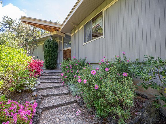 Vintage mid-century modern w/ architectural flair in highly desirable Timberpark area. Surprise awaits as the entryway opens to a vast 2-story atrium. Main living on top floor & winding stairs lead down to separate 1bed/1bth living quarters w/ private entrance. This home sits on .5 acre of private, park-like grounds. Relax on the deck & enjoy an expansive view of Coos River, green pastures, & mature landscaping in full bloom. One-of-a-kind must see! Next door .65 acre lot for sale MLS#21527744.
