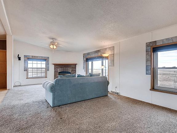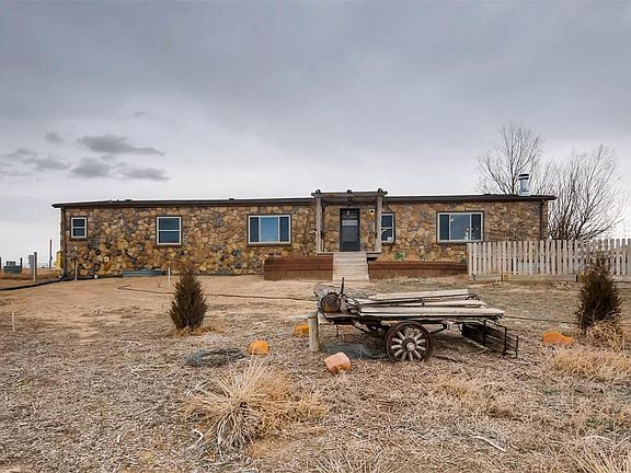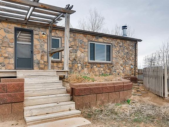 Very peaceful. Unobstructed mountain view Amazing covered porch includes private enclosed Jacuzzi hot tub. Geothermal electric heat and cooling, 2 -50 gallon hot water heaters, 250 gallon propane tank (for stove only) Wood burning fireplace with fan Whole house water filtration system and filter under kitchen sink. Basement has bedroom nearly finished with egress windows already in place, lift pump, water softener, utility sink. Unbelievable shelving and storage in this much loved home. Green house, raised flower/veg beds, cleary building 1,248 sq ft foam sealed big door and walk through. Chicken house, storage shed, earth ship animal shelter, 3 lean to's. 350 trees and many day lilies and iris. Very rural yet close to town, schools and Interstate 76. Lower level is a full basement.