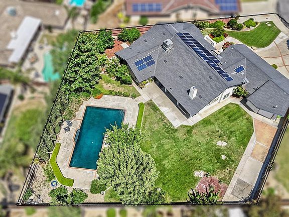 Welcome to this breath-taking 4-bed (PLUS OFFICE), 2.5-bath estate nestled in a quiet cul-de-sac in The Oaks community, featuring an OWNED solar system, a stunning swimming pool, a 4-car garage, and many updates throughout. Heading inside, the remodeled kitchen is equipped with granite countertops, tile backsplash, and updated cabinetry. The living room has high ceilings, modern colors, and plush carpet. The dining room comes with a large window, providing a perfect view of the backyard. The bedrooms and office boast large layouts, while each bedroom has a spacious closet. Stepping into the backyard oasis, you will dream about the great times you'll have enjoying the sparkling swimming pool, covered patio w/ bar table and ceiling fans, pull-thru garage w/ extra parking space, the separated garden area, as well as the custom built outdoor shower. Other updates include a newer roof, HVAC, plantation shutters, newer interior paint, and newer pool equipment. Schedule your showing today!