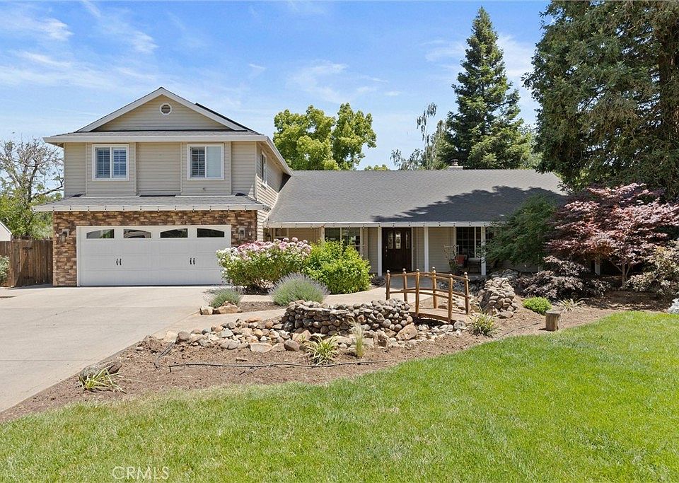 Welcome to 9508 Lott Rd—a stunning 4-bedroom, 3.5-bathroom home spanning 2,620 sq. ft. and nestled on a beautifully landscaped 1.13-acre parcel in the heart of Durham. This private estate offers a peaceful country setting just minutes from Chico, with quick access to Hwy 99—making it an ideal retreat with everyday convenience. Set back from the road, the property welcomes you with a tranquil waterfall feature, a charming bridge, and lush landscaping that leads to a spacious front porch—perfect for morning coffee or catching a front-row seat to glowing evening sunsets. A paved driveway brings you directly to the attached 2-car garage, and just off that, a gravel drive connects to the side road, providing gated access for extra vehicles, RVs, or trailers—there’s space here for all your toys. Inside, a bright, open layout offers both comfort and flow. The sunken living room is warmed by a freestanding wood stove and features vaulted wood beam ceilings, making it the coziest place to relax. The kitchen is truly the heart of the home, boasting an oversized granite island with bar seating, stainless steel appliances, and a farmhouse sink with a view of the backyard. It opens to the dining area, where built-in cabinetry and a wine rack make entertaining effortless. The thoughtful split-level floor plan allows everyone to spread out. Two guest bedrooms and a full bathroom are located upstairs, while a fourth bedroom with a walk-in closet and a nearby bathroom sits on the opposite end, ideal for guests or a home office. The primary suite is a private oasis, featuring a spa-inspired en-suite with a jetted tub, dual sinks, a walk-in shower, and a walk-in closet. Step outside and discover the backyard—a true sanctuary. Enjoy the sparkling pool with a tranquil waterfall, a recessed stone fire pit, and multiple patio areas with room for dining and lounging. A large lawn provides space for yard games or pets, and mature trees offer cool shade. You’ll also find a fully fenced dog/livestock run, raised garden beds, and a chicken coop that feels more like a mini farmhouse. The oversized covered patio with ceiling fans creates the perfect year-round hangout, and a Tesla solar system keeps your utility bills in check. 9508 Lott Rd is more than just a home...it’s a lifestyle. Come experience the warmth, space, and thoughtful design of this extraordinary Durham property.