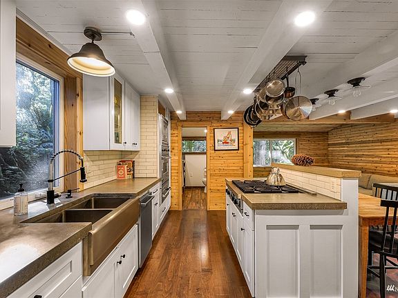 Welcome home to this charming mountain cabin location on 1.8 acres in Glacier just mins to Mt. Baker Ski area & National Forest. Home sits on a knoll w/ a treehouse like feel creating a unique environment surrounded by trees, a creek & mountain views. Welcoming living rm w/cozy fireplace & new flooring. Many updates & an addition with use of natural materials to bring the outside in. Gourmet kitchen w/concrete countertops, subway tile backsplash & stainless Viking range, oven & microwave. Updated bath w/tile surround & picture window. Mud room / laundry area offers a multitude of uses. Upstairs features an over sized bedroom w/extra space. Relax in the sperate sauna & wood fired "hot tub" or entertain on the covered deck or by the firepit. 2022-10-20