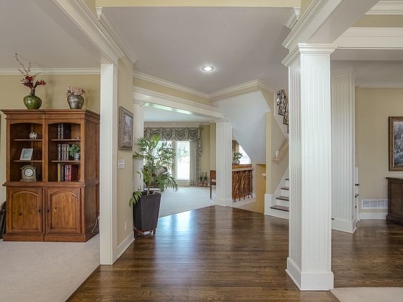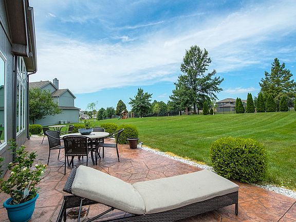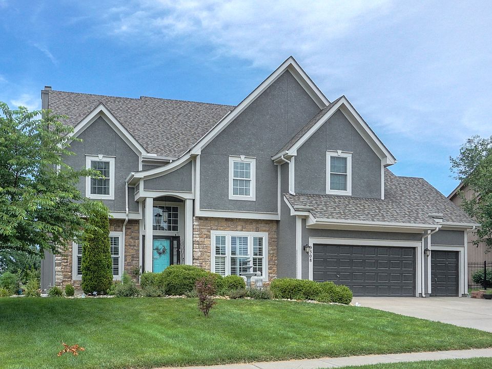 PRICE REDUCED! UPDATES COMPLETE! Large, open floor plan with front & back stair cases. Hardwood floors in kitchen & master bedroom. All bedrooms have walk-in closets. Front & back staircases. Newer roof, gutters & paint. Newer windows, fresh interior paint. All bedrooms have walk-in closets. Large yard professionally landscaped with sprinkler system plus a large stamped concrete patio. Cul-de-sac lot. Community pool & lake. Great highway access. Located close to shopping & KCI Airport. Room sizes are approximate.