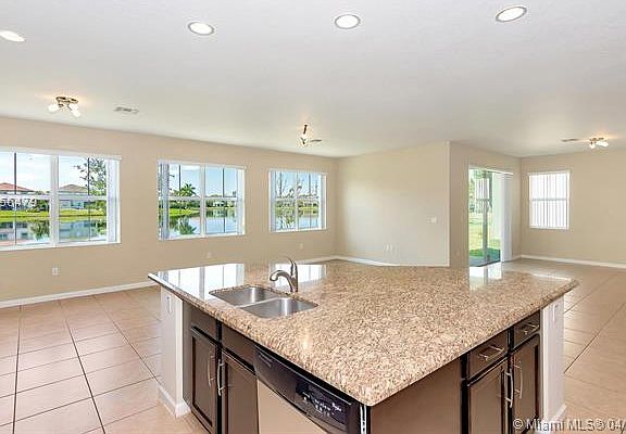 This gorgeous Tiara-model home is located in the prestigious and elegant Olympia Community. You will fall in love instantly! It is situated near a school, shopping mall, and the Florida Turnpike. This spacious home has a stunning lake view, and a plain yard that you can personalize to fit your taste. The kitchen features a beautiful granite counter top, stainless-steel appliances, and wooden cabinetry, astounding view from kitchen and family room!