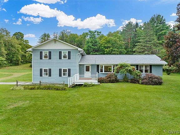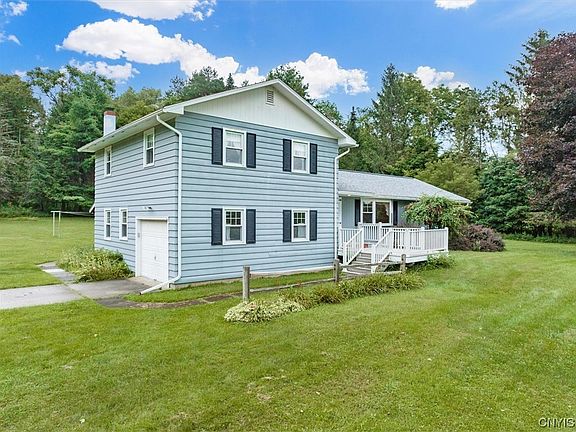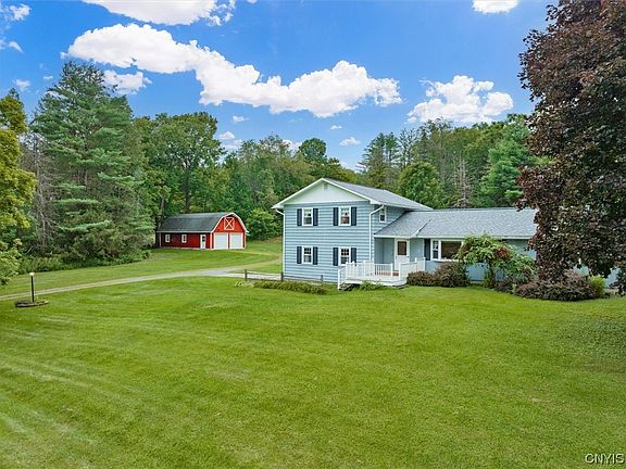This well maintained home has 4 bedroom 2 and a half bath sits perfectly on a 5, mostly flat, acre lot. The front porch is inviting but there is so much more to see. The front door leads to the entry hall with direct access to the large living room and kitchen. On the east end of the home is the family room, laundry room & half bath, which is directly off the back door. When working or playing outside, no need to go through the entire home to use the restroom. There is also a 1 stall attached garage. On the west side of the home is the dining room and primary suite. The suite was constructed in 2006 hosting the large primary bedroom with sitting area and a full bath. On the 2nd floor we find 3 additional large bedrooms and a 2nd full bath. Plenty of room for the entire crew! Out the back door is a covered patio with and a wonderful yard beautifully framed by trees on 3 sides. Follow the driveway back to the classic red barn. The perfect place for four or more additional vehicles and well as room for the tools and toys. Above there is plenty of room for storage or a fantastic hobby room. All this is just 20 minutes to Utica, 30 minutes to Rome, Herkimer or Little Falls.