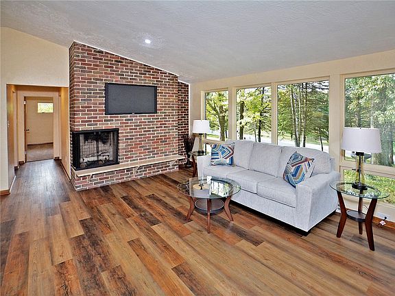 SOLID CONTEMPORARY RANCH ON 2.0 ACRES IS TRULY MOVE- IN- READY. HOME FEATURES: LRG OPEN FLR PLAN ,NEW: WATER PROOF RUSTIC FLRS IN 20X13 LIVING RM. COMPLETE W/CATH. CEILING , NEW RECESS LIGHTS, FLR. TO CEILING BRICK FIREPLACE, 13X11 FORMAL DINING RM.W/ PATIO DR. OPENS TO 56X11 CONCRETE PATIO ,12X12 RETRO KITCHEN W/ORIGINAL SOLID WOOD CABINETS, CHAMBERS GAS RANGE, POCKET DR.TO LOWER 21X14 FAM. RM. W/ BUILT IN NOOKS, STONE FIREPLACE. MAIN HALL LEADS TO FULL CUST. CERAMIC BATH., 3 NICE SIZE BD. RMS. 13X12 MASTER, 2ND.13X11, 3RD.10X9 COMPLETE W/NEW CARPET & CEILING FANS. NEED MORE SPACE? DOORS IN FAM. RM. OPEN TO 18X12 LAUNDRY RM., 2ND FULL BATH W/ WALK-IN SHOWER OR ENTER 26X23 FURNACE RM. THAT WILL ALLOW ENDLESS POSSIBILITIES. 22X20 ATTACHED GARAGE OFF KITCHEN IS 16 COURSE HIGH. OUTSIDE FEATURES INCL. BRICK SHED, FRUIT TREE ORCHARD. LIVE WELL TO WATER GARDENS ,GRASS. HOME FRESHLY PAINTED INSIDE & OUT. LOCATED CLOSE TO MONROEVILLE RT.22 & PA. TURN PIKE. NEW ITEMS:FURNACE 2021, ROOF 2019.