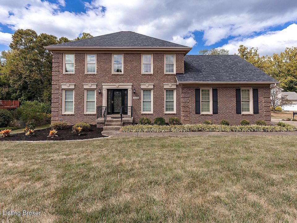 Welcome to 9509 Farmstead Ln. This sprawling traditional two story home has it all. Curb appeal is excellent featuring professional landscaping, solid brick construction, and custom style. As you enter the home you will notice the sitting and formal dining rooms boasting beautiful chair railing, crown molding, hardwood floors, a chandelier, and tray ceilings. The open eat in kitchen area is complete with an island, granite countertops, white cabinets, white appliances, and a good sized pantry. The attached den offers a gas burning fireplace and beautiful views of the woods that border the property. Get a better look of the area, or grill and relax with friends and family on the walkout deck. Great views and good times! Coming back inside, the laundry room is also conveniently located on the main level of the home. Heading upstairs you will notice the carpeted stairs and bedrooms. All bedrooms are located on the second level of the house. Three large secondary bedrooms that share a common full bathroom, and a large primary bedroom featuring private bath, walk in shower, whirlpool tub, walk in closet, laundry chute, and skylit double vanity. Heading to the basement of the home you will notice lighted stairs, all new carpet, a craft/bonus room that could be used as a possible 5th bedroom, 2 storage rooms, a workshop, another full bathroom, and living area that features a wet bar, gas fireplace, and a walkout patio with covered deck area. Outside the yard has been well maintained. Plenty of beautiful plants and sights to see! The home sits on a corner lot with a double wide driveway and attached 2 car garage. This home truly has it all. Schedule your showing today! ** Priced below recent appraisal 9/2024** Listing price reflects the few things needing done.