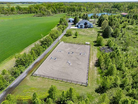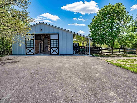 72 hour first right contingent offer accepted.*Equestrian Paradise Meets Modern Luxury* One-of-a-kind Equestrian Estate nestled on 5 private acres in the coveted NACS school system. This magnificent property offers a 4,900 sq/ft home, built with uncompromising quality in 2022; a 1,700 sq/ft barn w/over-sized horse stalls, tack room, & wash bay, a 160x95 riding arena, and a sparkling in-ground pool. Step into a world of culinary delight within the chic gourmet kitchen, where the flicker of a dual-sided fireplace ignites the senses amidst an open layout. Revel in the culinary arts among a grand 10-foot island adorned with exquisite quartz countertops, complemented by sleek black stainless appliances. A dedicated coffee/wine bar area invites moments of relaxation, while a built-in oven and expansive pantry ensure every culinary need is met with ease. Entertain with grace in the soaring great room, adorned with lofty ceilings and panoramic picture windows that bathe the space in natural light, showcasing the pristine white oak hardwood flooring that flows throughout. Host elegant soirées in the sophisticated dining room, poised to accommodate gatherings of family and friends. Retreat to the main floor primary suite, a haven of tranquility featuring a decadent garden tub, a walk-in tile shower, and an immense walk-in closet, offering unparalleled comfort. Upstairs, discover three generously appointed bedrooms, each boasting its own walk-in closet, accompanied by a versatile loft space ideal for a playroom or home office, and bonus storage for effortless organization. Descend into the sprawling lower level, where a haven of entertainment awaits, complete with a lavish wet bar, a state-of-the-art theater room, and a cozy fireplace, providing the perfect setting for intimate gatherings and leisurely evenings. Outside, immerse yourself in the captivating beauty of the property, where verdant pastures and lush woodlands create a picturesque backdrop for outdoor enjoyment. Relax upon the expansive stamped patio, bask in the sun upon the sprawling sun deck, or seek solace within the tranquil embrace of the covered patio, where moments of serenity await amidst the gentle rustle of the trees. Experience the height of extravagance at this extraordinary residence, where dreams become reality and every indulgence is effortlessly attained.