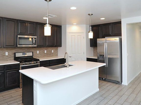 Beautiful Vail area home. Vail schools with Esmond Station Elementary in the neighborhood. Spacious 3 BR/2 BA with lots of upgrades including all tile flooring throughout (no carpet). Kitchen features quartz counter tops, farm house sink, stainless steel appliances, walk in pantry and pendant lights. Primary bedroom and bath features executive height dual vanity & walk in closet. Home backs up to common area. Backyard includes extended paver patio with firepit. Washer/dryer included. Located in the beautiful community of Mountain Vail Estates with easy access to Esmond Station K-8, Empire High, Cienega High, lots of shopping, restaurants and I-10 close by. Non-smoking home. One year minimum lease. Renters insurance required. $45 application fee per adult. Call for pet policy.