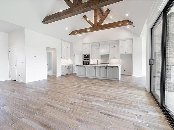 This Zade Bonus Room floor plan includes 3,105 Sqft of total living space, which features 2,850 Sqft of indoor space and 255 Sqft of outdoor living. This spectacular home offers 4 bedrooms, 3 bathrooms, a bonus room, a utility room featuring a utility sink, a mudroom, covered patios, and a 3-car garage with carriage doors and an in-ground storm shelter installed. The great room welcomes wood-look tile, a breathtaking cathedral ceiling with crows feet, a luxurious 3-panel sliding door with a 4' back patio extension, rocker switches throughout, and a ceiling fan. The up-scale kitchen presents stainless steel appliances featuring a 5-burner cooktop and double ovens, 3 CM countertops, well-crafted cabinets to the ceiling, soft close drawer glides and hinges throughout, a corner pantry, decorative tile backsplash, and a large center island with a trash can pullout installed. The primary suite has a sloped ceiling detail, windows, a ceiling fan, and our cozy carpet finish. The primary bath includes a walk-in shower, a free-standing tub, a private water closet, a dual sink vanity, and a HUGE walk-in closet! Step outside to enjoy the covered back patio which offers a wood-burning fireplace, a gas line, and a TV hookup. Other amenities include our healthy home technology, a tankless water heater, a whole home air filtration system, R-44 insulation, and so much more!
