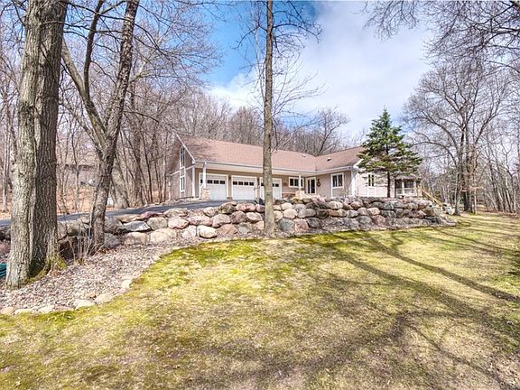 Surround yourself with elegance in this stunning home. Custom built with attention to detail in every area. Open floor plan boasting natural light. Living area highlights a cultured stone fireplace complemented by a vaulted cedar ceiling. Gorgeous oak trim with birch accents throughout. Tucked off the road for extra privacy. The pond next to the property provides added privacy and an abundance of wildlife. A small public landing just across the street allows for easy access the Chetek Chain of Lakes. An enormous master suite provides a full private bath, large walk-in closet, & private deck access. Hard surface counter tops and birch cabinets complement the kitchen. A large laundry space serves the main level, making for simple single level living. The lower level features a large 4th bedroom, office/den/non-conforming 5th bedroom, family room, full bath, and craft room. Just a glimpse of what this home has to offer.