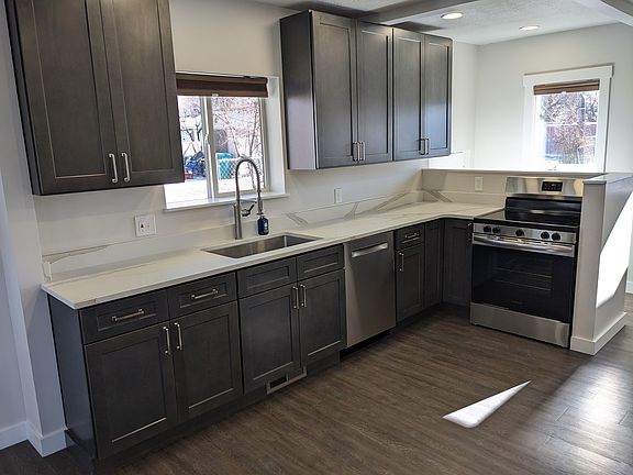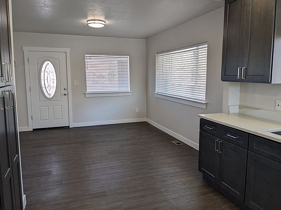 This upstairs unit has just been renovated, including new flooring, paint, windows, and appliances. It has a large master bedroom with its own exterior entrance. The partially fenced back yard has an apple tree and a grape vine. All utilities, including yard care and snow removal, are included in the flat rate of $200 per month. Applicants must pass a background check. If you have any questions, please call or text Chad. Flat $200.00 per month for utilities (water, sewer, garbage, gas, electric, yard care & snow removal) - 12month minimum lease - $50.00 application fee