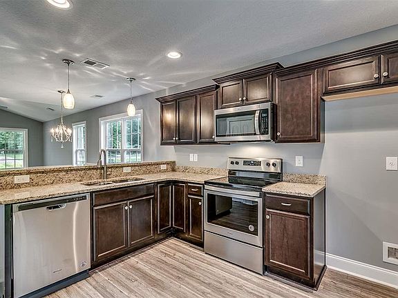 This is the Sumter floor plan on 0.32 acres lot with 1 car garage. No HOA! This house features granite counter top in the kitchen and bathrooms, brushed nickel light fixtures, vinyl flooring throughout the house and carpet in the bedrooms, stainless steel appliances, 5 1/4 MDF speed base throughout the house, molded interior doors and windows with 3-1/4 FJ casing, fiberglass screens on the windows, oval glass steel front door, all bedrooms wired for fans and phone, landscape, extra storage space, front porch, and much more. A must see! Pictures are another house, but same floor plan. Colors may be different from actual pictures. Bedrooms will have carpet but can be upgraded to vinyl flooring. House is to be built.